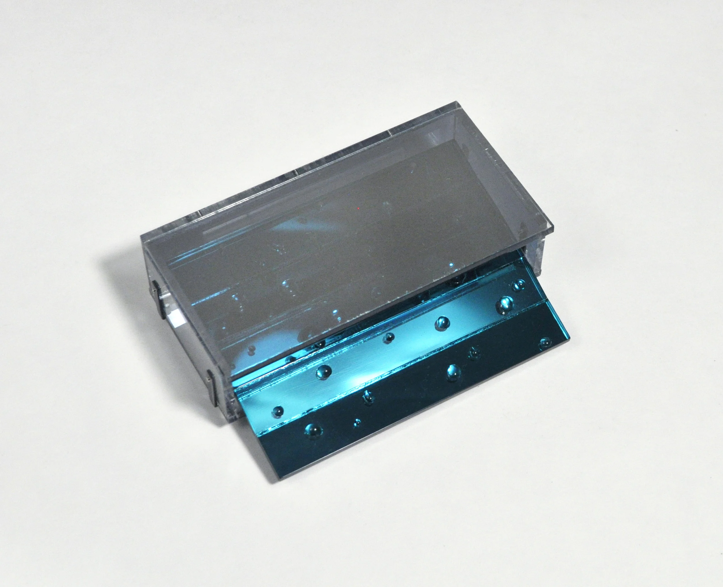 Elements in nature that provide us with the most satisfaction are rendered in man-made materials such as colored mirror acrylic and mylar - mimicking ephemeral effects of light and water. The reflections create rose-tinted echoes of the landscape around the wearer— a stopgap method of trapping an experience. This jewelry operates as a portable device, a sentimental exhibition to consciously establish identity. In a form that has historically been a projection of wealth, status, and symbolic power, these adornments project who the wearer would like to be, and the world they wish to be in.